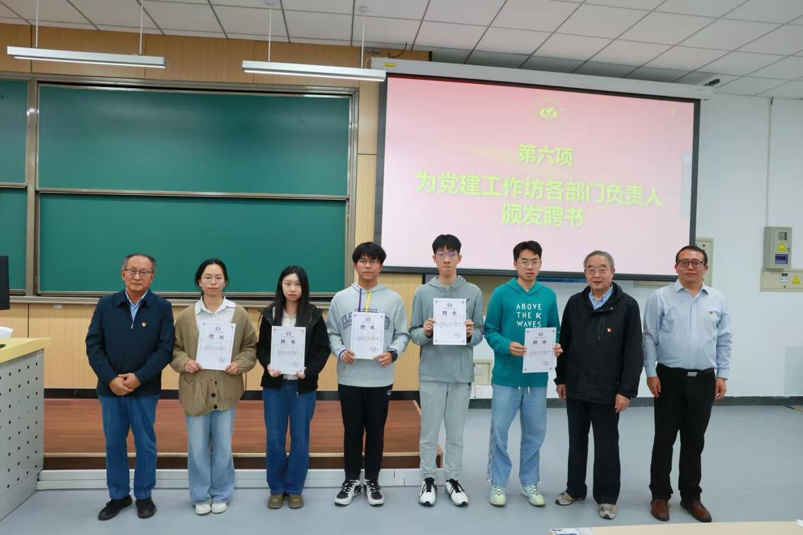 仪式上,郭伟丰院长为郑彦良教授、马军老师颁发“荣誉讲师”与“理论导师”聘书;三位老师共同为第九期党建工作坊各部门负责人颁发聘书,并为第八期优秀学员颁发荣誉证书,以表彰他们的优秀表现与传承精神。随后,各部门部长依次上台介绍本部门职责与工作计划,标志着新一届党建工作坊正式扬帆起航。