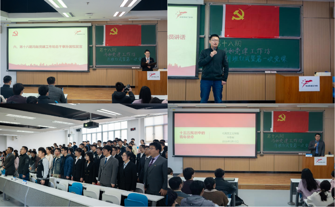 开班仪式后,马克思主义学院华思衡老师以《“十五五”规划中的青年使命》为题,讲授了本期党建工作坊的首次党课。他结合党的二十届四中全会精神,系统讲解了“十五五”规划建议的制定背景与形成过程,指出“十五五”时期是基本实现社会主义现代化的关键阶段。他寄语广大学员,要将个人理想融入国家发展大局,在实践锻炼中增长才干,把深厚的家国情怀转化为扎实行动,努力成长为担当民族复兴大任的时代新人。