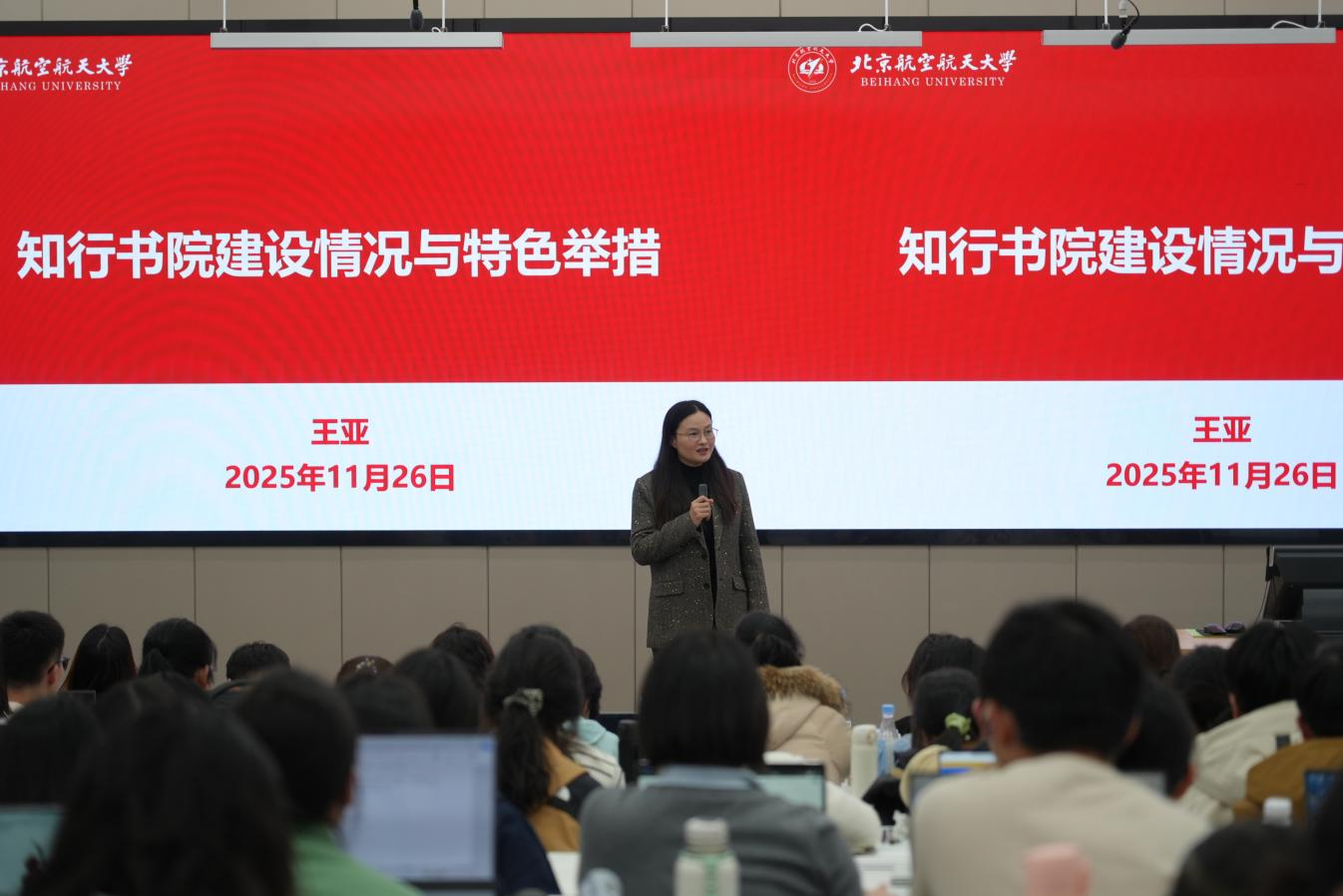 知行书院执行院长王亚作“知行书院育人体系”专题报告。她从思政建设、导师制度、通识教育、学业支持、博雅体系、学科交叉融合等方面介绍了书院的育人模式和特色工作,系统展示了书院服务学生全面发展与个性化培养取得的丰硕成果。最后,王亚院长勉励同学们在品学兼优的基础上,积极投身学生工作、科研活动与社会实践,探索属于自己的闪光点,将个人的“知行故事”写入新时代的壮丽篇章。