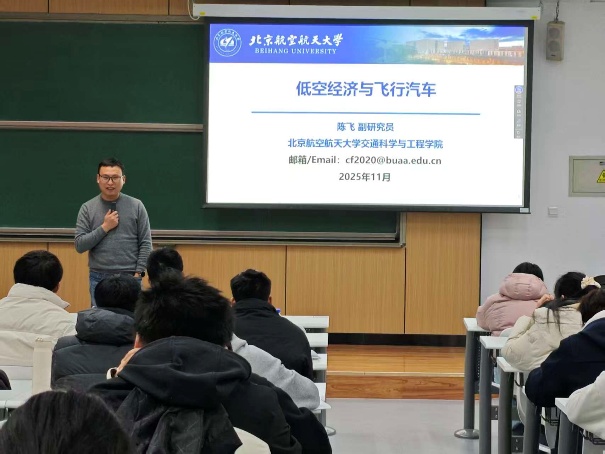 (通讯员 马静)为增进同学们对低空经济与飞行汽车的发展现状与未来趋势的了解,激发对前沿科技的兴趣,11月26日晚,冯如书院邀请交通科学与工程学院陈飞老师以“低空经济与飞行汽车”为题开展专题讲座。
