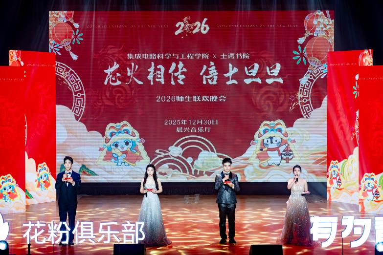 (通讯员 梁语萱 孙雅轩)12月30日晚,集成电路学院与士谔书院“芯火相传 信士旦旦”2026年元旦师生联欢晚会暨“璀璨之芯”“士谔志士”颁奖典礼在晨兴音乐厅举行。整场活动集表彰先进与文艺盛宴于一体,既彰显了两院学子的卓越风采,也凝聚了师生同心的深厚情谊,为即将到来的 2026 年奏响了昂扬序曲。