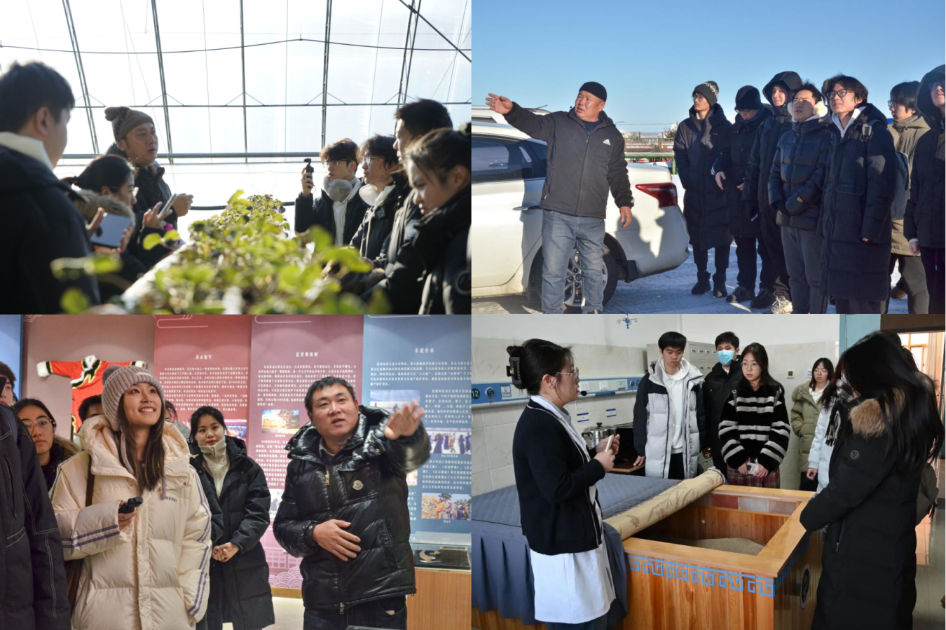 在新生鄂伦春族乡,实践队员走进村庄了解当地民族文化风貌。在五道沟村巡边路上,队员们与护边员同行,了解他们的日常工作和生活。在坤站村寒地玫瑰花生产基地,实践队参观了解古驿站村落历史与乡村建设现状。